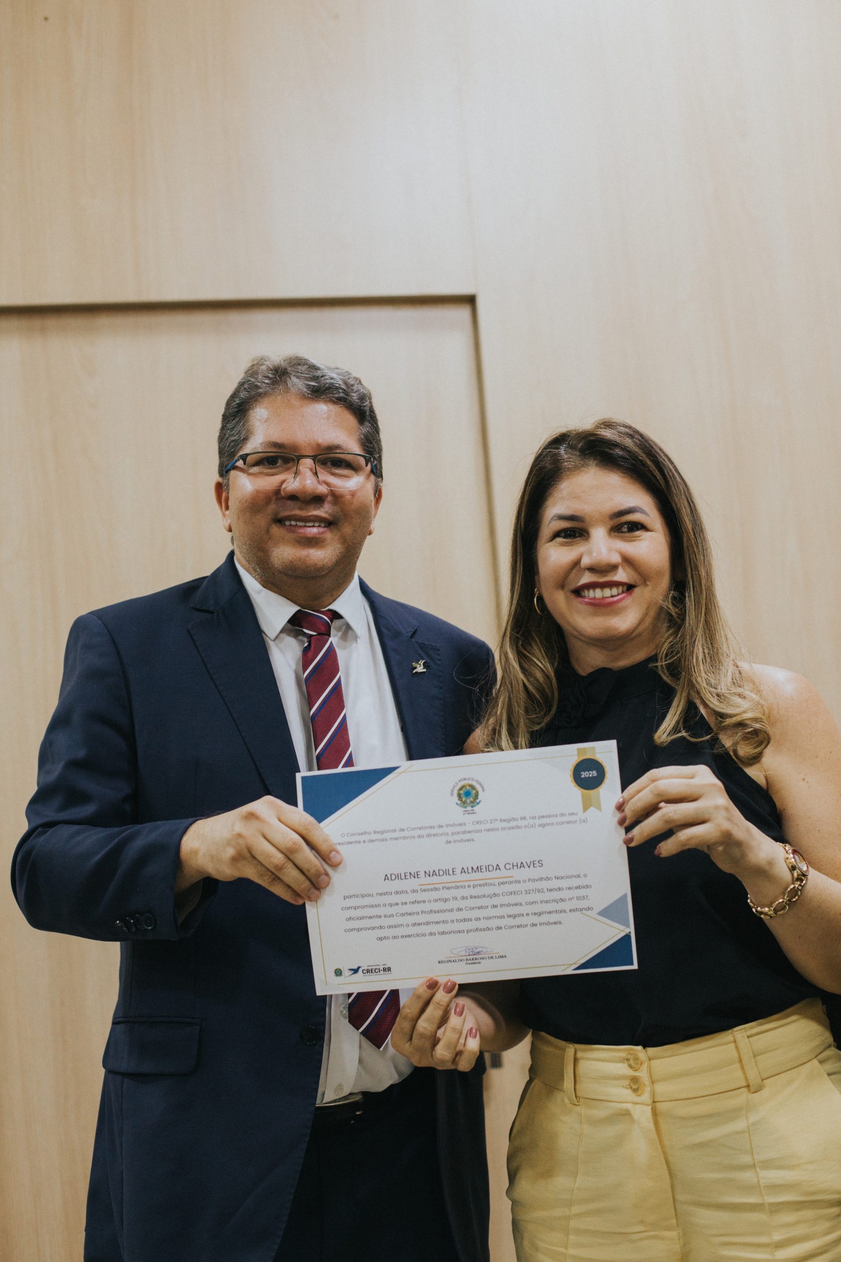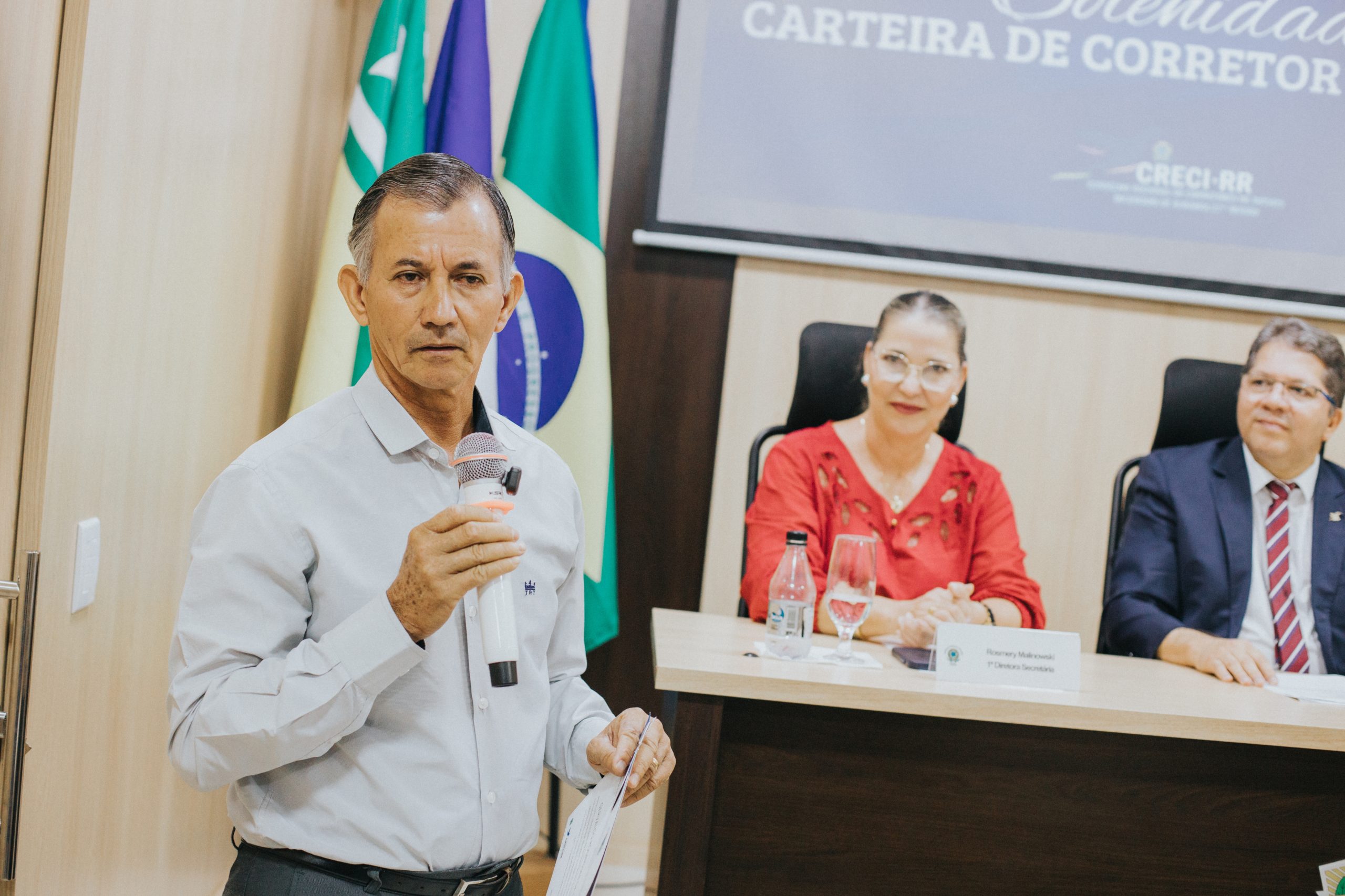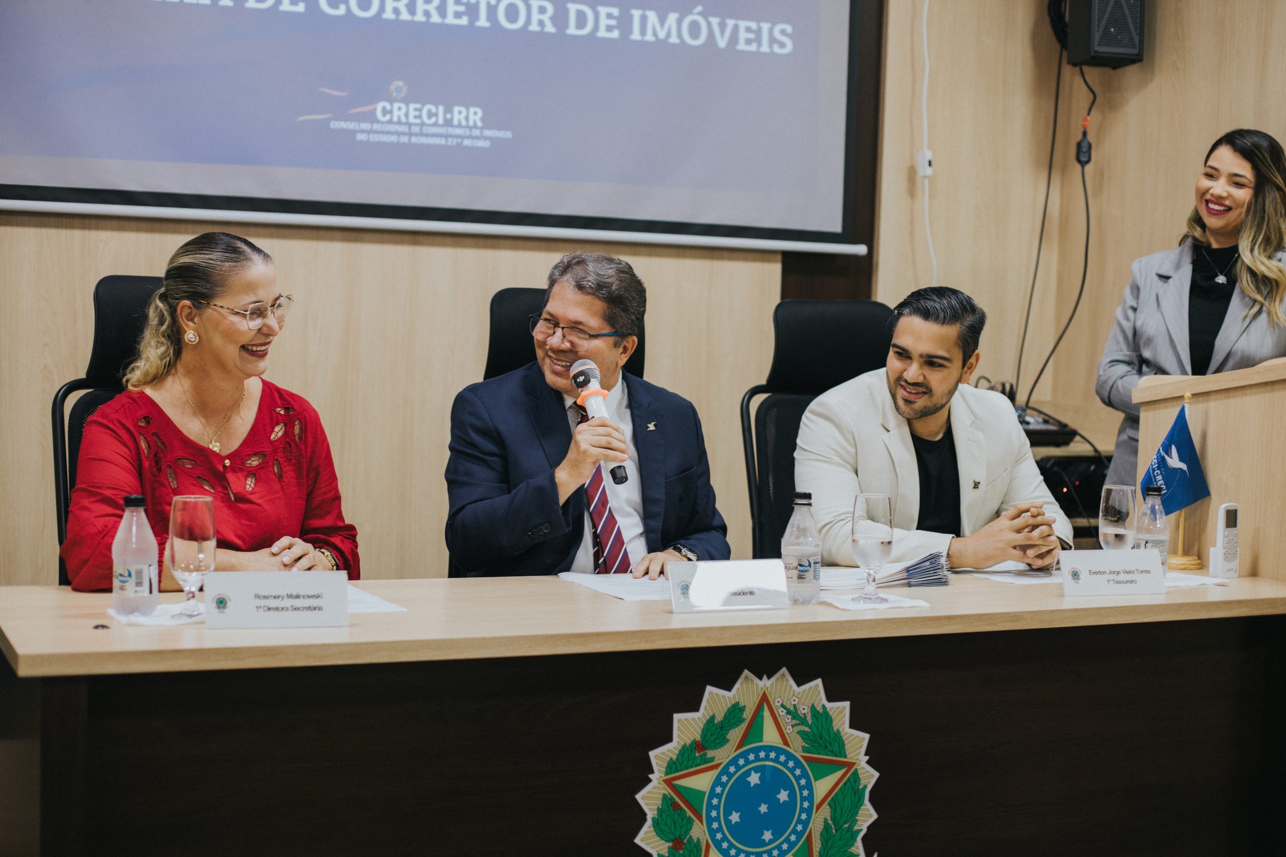 A solenidade contou com a participação da mesa diretora do CRECI Roraima, representada pelo presidente Reginaldo Barroso de Lima, o tesoureiro Everton Torres, a diretora secretária Rosemary Malinowski, tivemos também a presença do presidente da Comissão de Assuntos Legislativos, Ricardo Mattos, e a segunda diretora secretária, Iolanda Takahashi e a assessora jurídica Jéssica Werner.