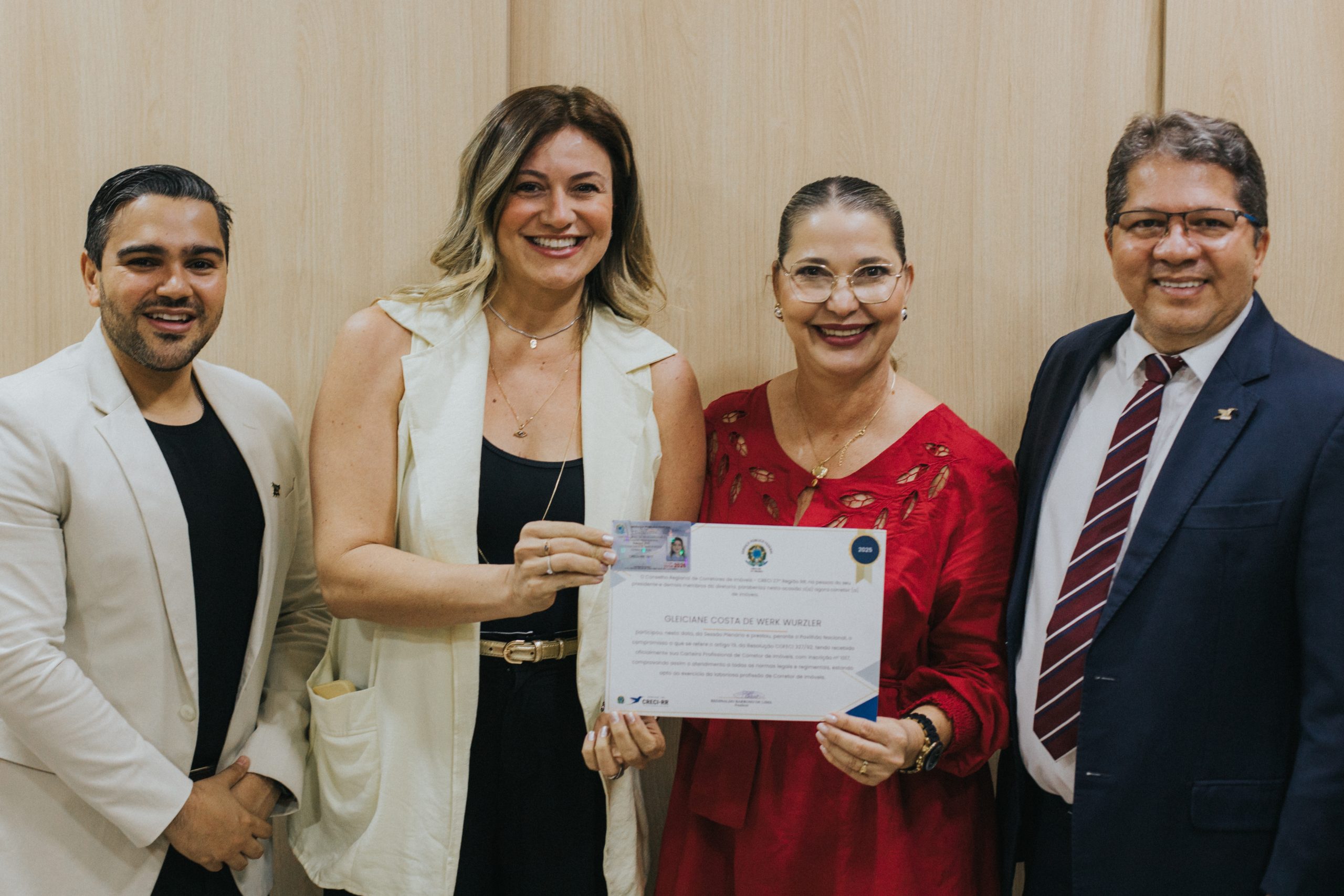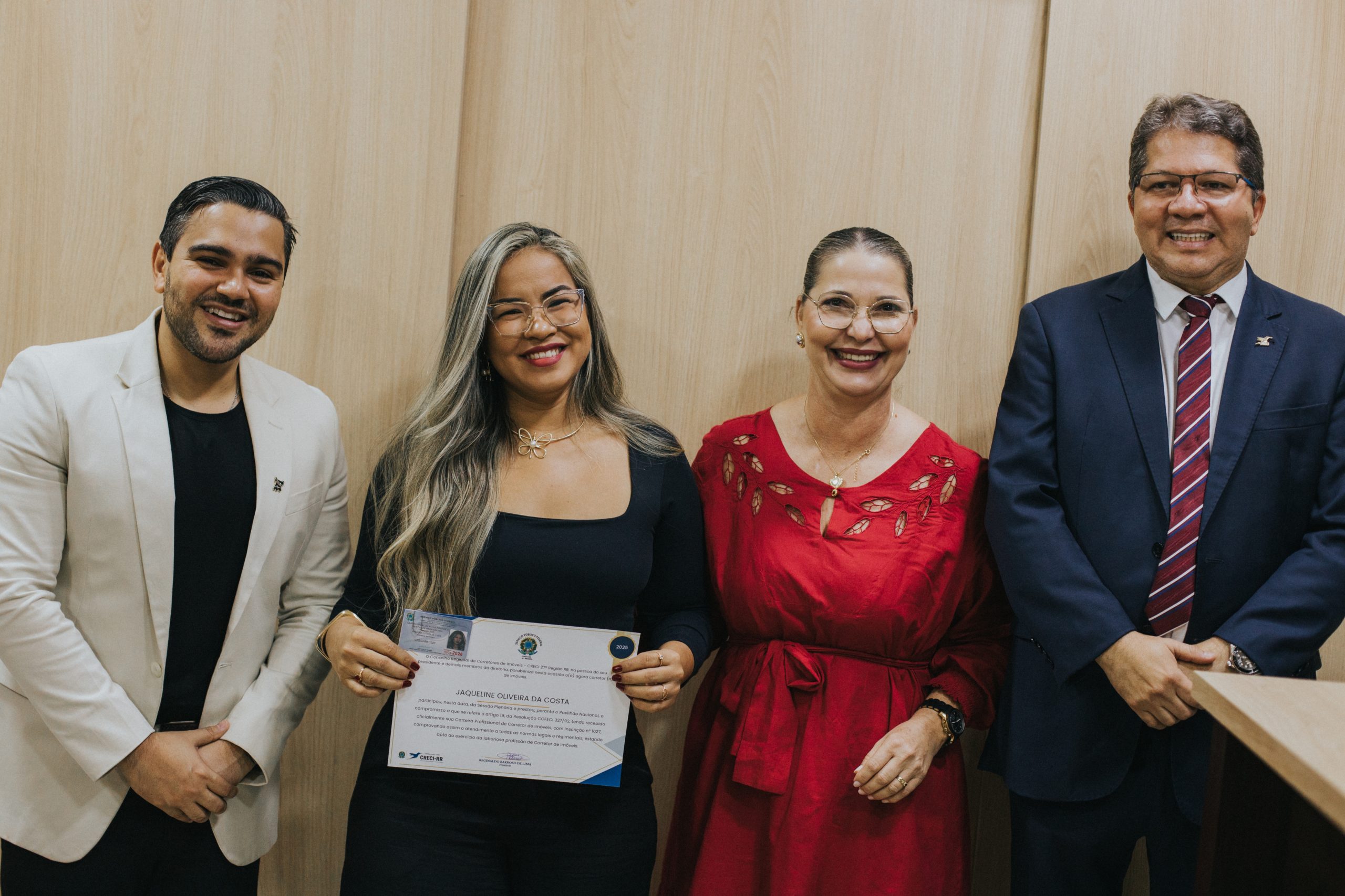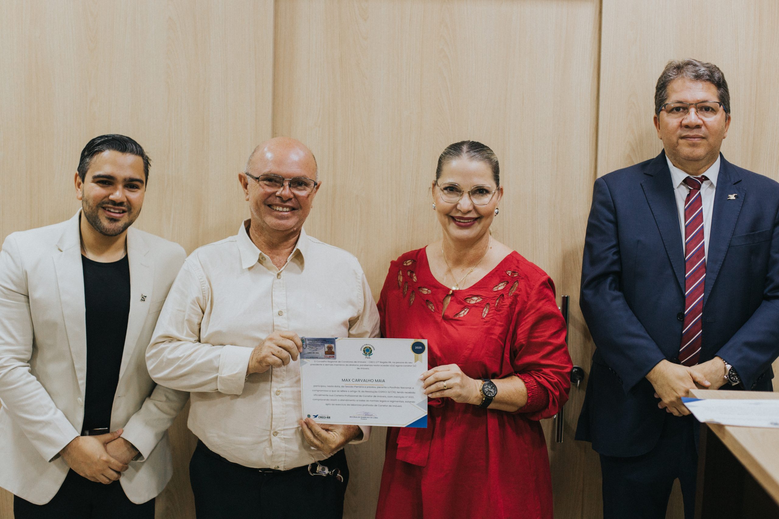 A solenidade contou com a participação da mesa diretora do CRECI Roraima, representada pelo presidente Reginaldo Barroso de Lima, o tesoureiro Everton Torres, a diretora secretária Rosemary Malinowski, tivemos também a presença do presidente da Comissão de Assuntos Legislativos, Ricardo Mattos, e a segunda diretora secretária, Iolanda Takahashi e a assessora jurídica Jéssica Werner.